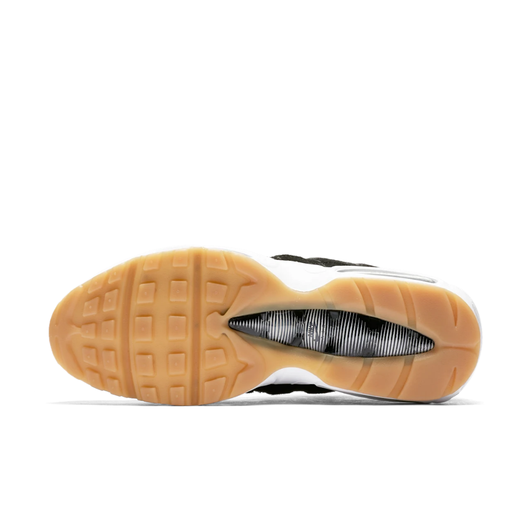 Nike Air Max 95 Black Gum patike donose elegantan i moderan crni dizajn u kombinaciji sa izdržljivim gum đonom za dugotrajno nošenje. Kultna Air Max tehnologija pruža dodatnu udobnost i podršku, što ih čini savršenim za svakodnevnu upotrebu. Podigni svoj stil uz ove nezaobilazne patike.